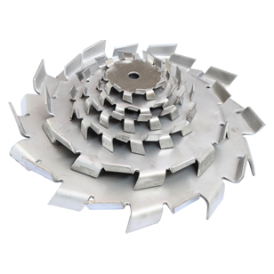 分散盤是配套于高速分散機的配件,連接于高速分散機主軸。分散機主軸高速運轉時,分散盤上下方呈現旋轉狀態,同時會在邊緣2.5-5mm處形成湍流區。分散盤上下鋸齒對涂料、油漆、干粉、固—液等物料進行高速的剪切、撞擊、粉碎、分散,以便達到迅速混合、溶解、分散、細化的狀態。