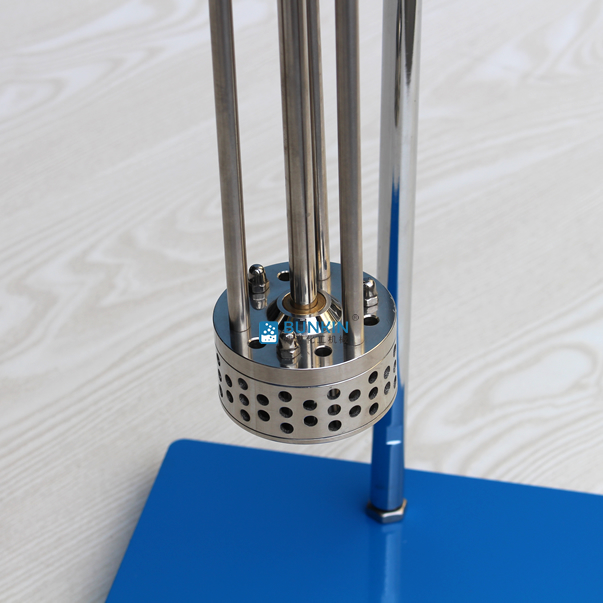 實驗室乳化機強勁的馬達進行高速旋轉使轉、定子之間形成真空,物料從轉、定子上部和底部吸入。強大動能使轉子產生極高的線速度,使物料在轉、定子間隙之間經過強烈的撞擊、破碎、離心擠、液層摩擦、強力剪切之后飛射出去,在多種不同方向力的作用下,產生強大紊流。物料在適量乳化劑和成熟工藝下經過一定時間反復循環解聚、分散、均質、細化、剪切產生穩定乳狀液。