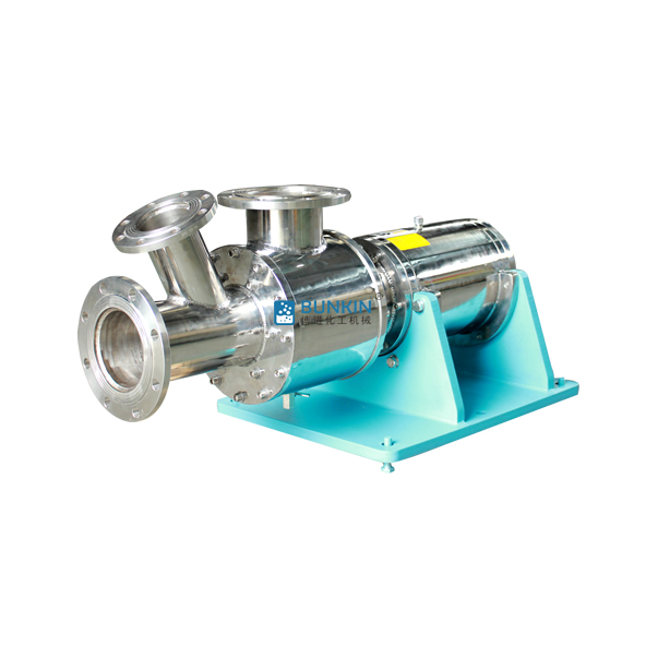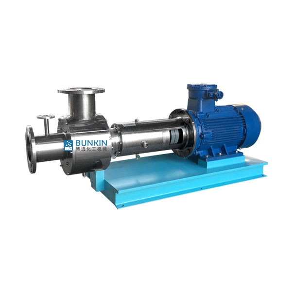 固液混合乳化泵是通過(guò)主軸的吸料裝置在狹窄的過(guò)道內(nèi)進(jìn)行高速運(yùn)動(dòng),而產(chǎn)生的真空將比重略輕的固體物料吸入乳化泵工作腔與液體進(jìn)行混合均質(zhì)輸送。一般連接于反應(yīng)釜(罐)的出口處,當(dāng)液體自流于乳化泵時(shí)與吸入的固體物料進(jìn)行高速混合均質(zhì),使固體物料快速得到混合、反應(yīng)、解聚、溶解、均質(zhì)等工藝流程。