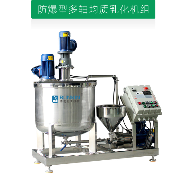 均質(zhì)乳化機(jī)組是集低速刮壁攪拌、高剪切乳化泵、循環(huán)管道、真空密閉系統(tǒng)、電路控制等設(shè)備相輔相成而組合成的較好的密閉型均質(zhì)乳化設(shè)備。設(shè)備可根據(jù)客戶需求,定制各種規(guī)格的真空密閉、加熱或冷卻、電控等功能于一體的均質(zhì)乳化機(jī)組,滿足實(shí)驗(yàn)室和生產(chǎn)的需求。
